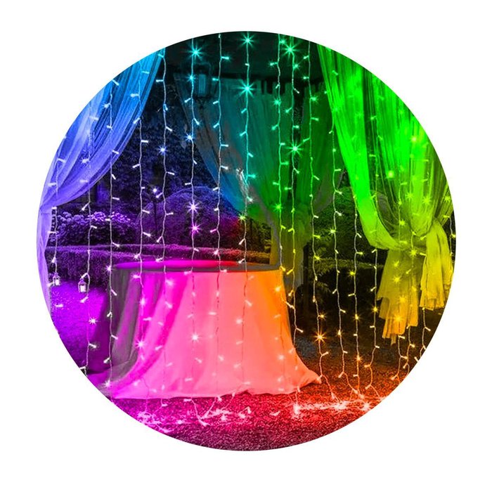 - A cortina pisca pisca possui 300 LEDs coloridos.