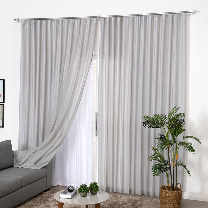 Cortina prega Wave para Trilho Simples Duplex de Linho com Forro de Microfibra 3,00m x 2,80m Cinza