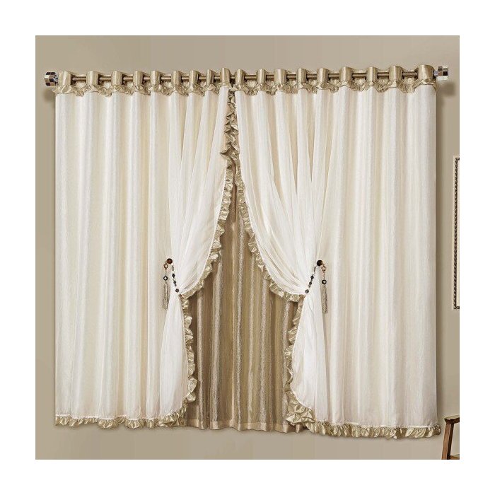 Cortina Rainha Varão Seda e Voal com Babadinhos 2,00 x 1,70m - Avelã