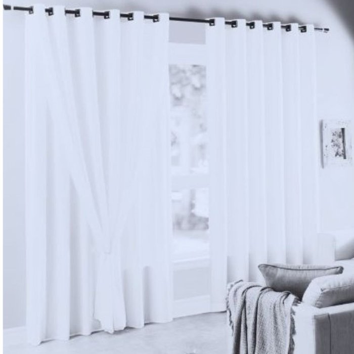 Cortina em voil trabalhado com forro 2,60m x 5,10m com ilhós,disponivel na cor branco indicada para varão de ate 4,00m.Embalagem única contendo 2 partes.A Cortina Voil com forro é ideal para quem deseja decorar e dar aquele toque de sofisticação e delicadeza ao ambiente é confeccionada com material de qualidade que garante todo o charme do produto. Decore e renove a sua casa com muito mais praticidade.