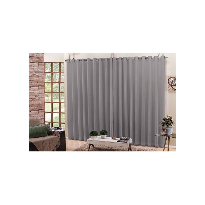 cortina sala quarto voal liso cinza c/ forro cinza 4,00x2,50 cinza