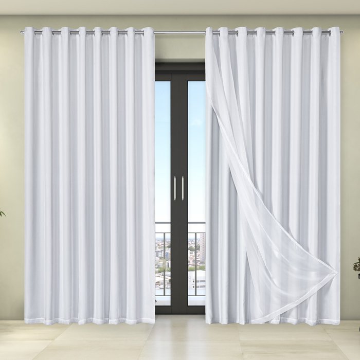 Cortina Tecido Blecaute com Voil Liso 4,00m X 2,70m Dual Forro para Sala Quarto Blackout Branco