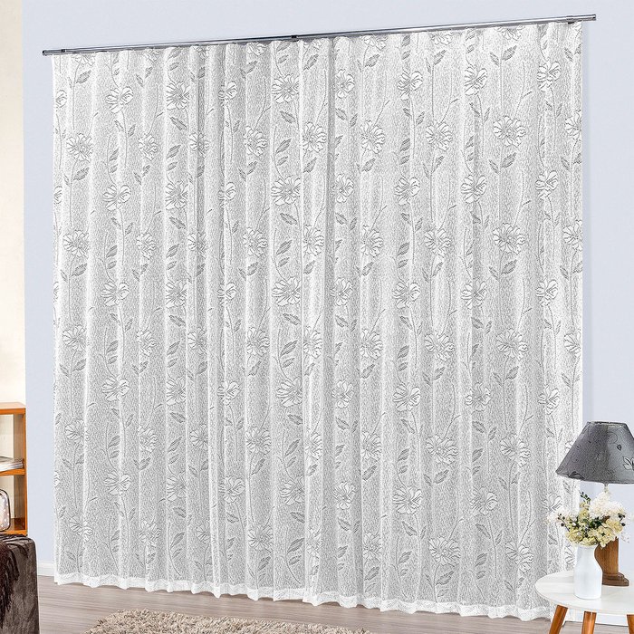 Cortina Trilho Suíço de Renda Branca Catar 3,00m x 2,50m para Trilho de 2 Metros