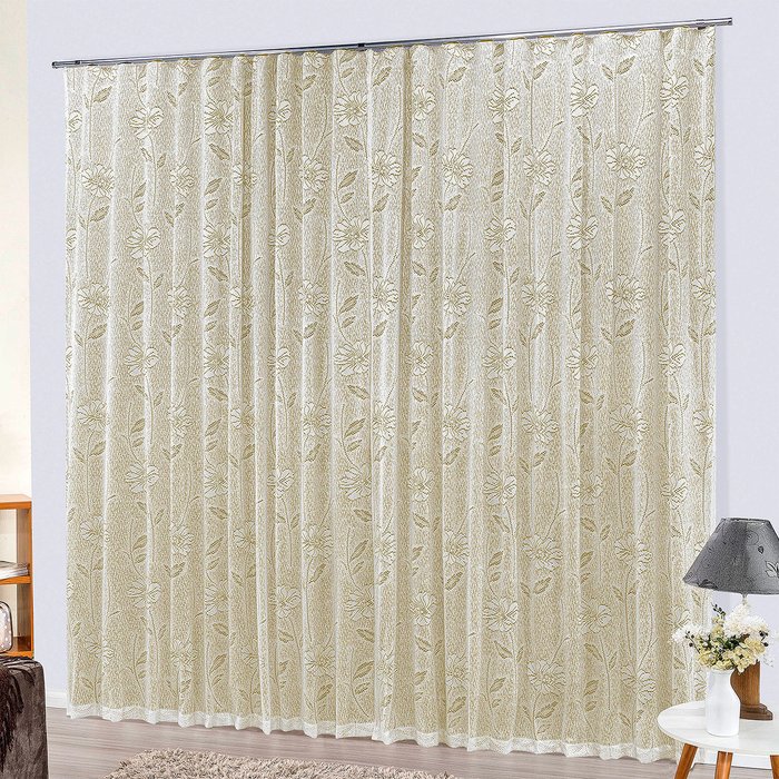Cortina Trilho Suíço de Renda Palha Catar 4,40m x 2,50m para Trilho de 3 Metros