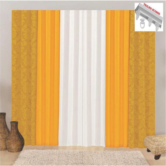 Cortina Trilho Suisso Composê 3,00m x 2,60m Amarela