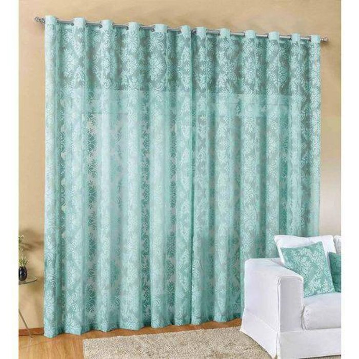 Cortina Vila Real 3 Metros x 2,80 Metros Alt. Tecido Renda - Azul Tifani