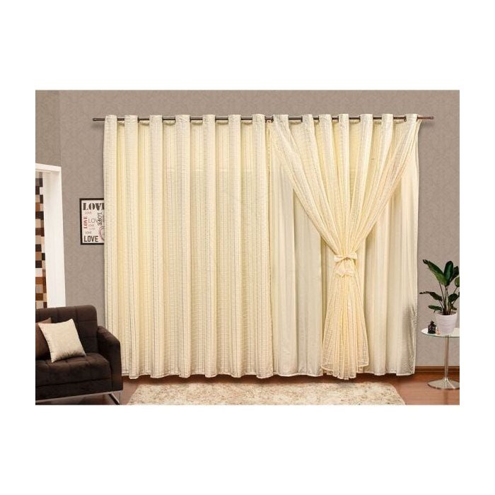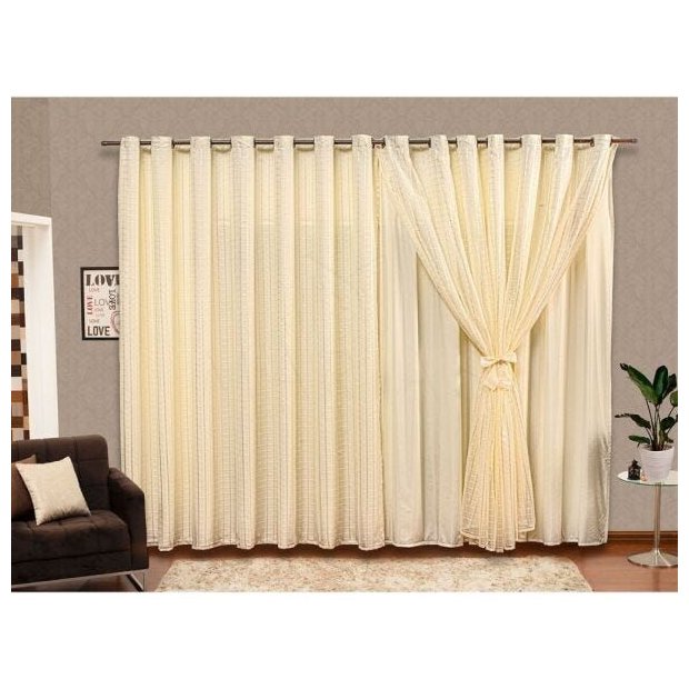 Cortina Voil Palha Xadrez Forro Micro Fibra 6,00 x 2.50 Ilhós Cromado