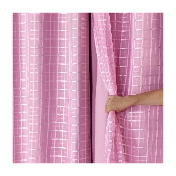 Cortina Voil Xadrez com Forro Blackout 6,00 X 2,80 Rosa Rosa