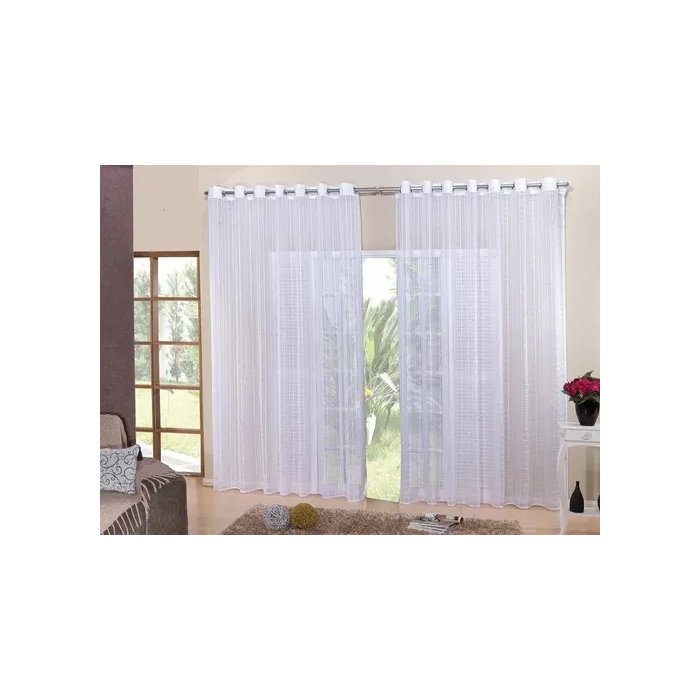 Cortina em tecido voil, os ilhós são quadrados e cromados, tecido com excelente caimento.