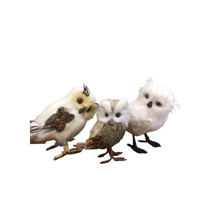 Coruja Em Pelúcia, Palha E Penas - Unidade Branca Com Asa Em Pinha