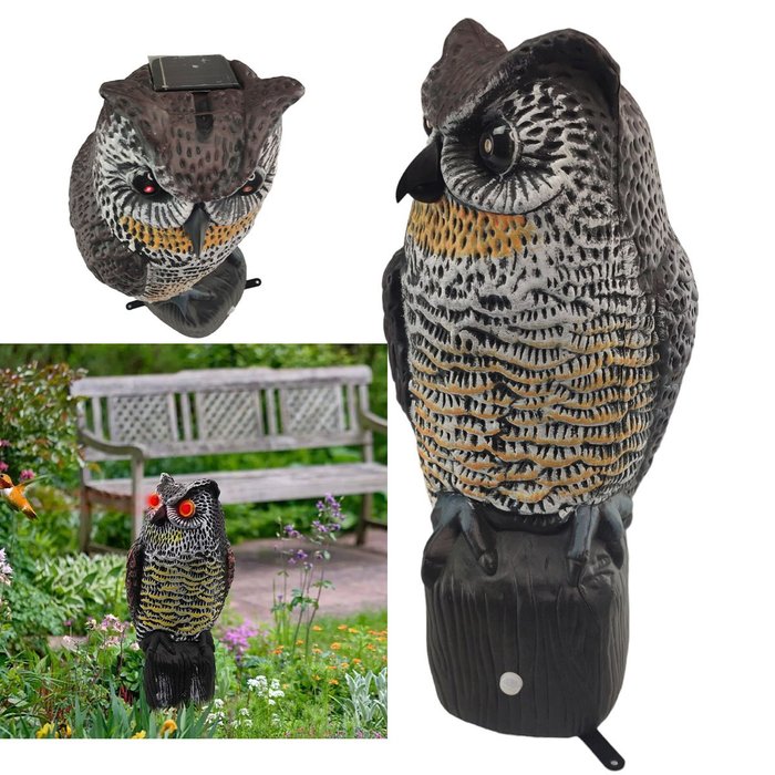 Com design realista, esta estatua de coruja que acende os olhos e som vivido que garantem a proteçao e mantem as pragas longe de sua propriedade. E o melhor, tudo isso com Energia Solar, que absorve a energia do sol durante o dia e acende a noite.