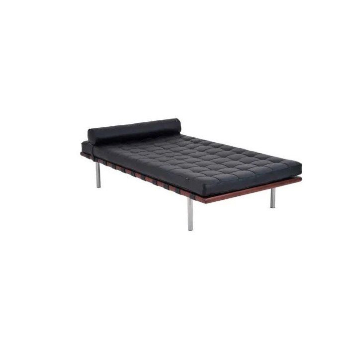 A Couch Barcelona de Ludwig Mies Van Der Rohe é um exemplar intemporal do design Bauhaus. Criada em 1930 apresenta formas geométricas claras e um perfil elegante. Possui espuma em alta densidade e revestimento em couro costurado à mão em quadrados e o encosto para a cabeça simples e cilíndrico complementa a imagem de linhas coesas. O Couch Barcelona é uma peça fascinante, seu estilo simples, elegante e versátil traz sofisticação e tranquilidade para qualquer ambiente. Possuir um Couch Barcelona e sinal de extremo bom gosto!
