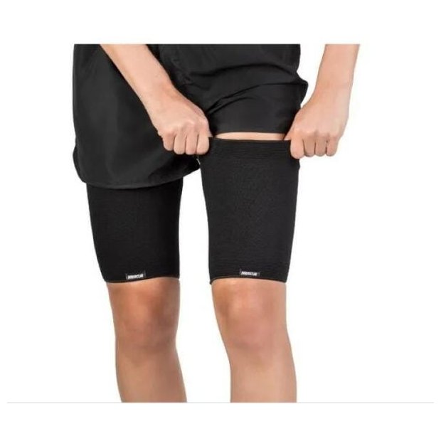 Prevenção de lesões durante as atividades físicas, protegendo a musculatura da coxa.