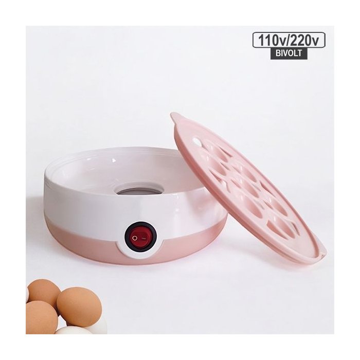 Cozedor de Ovos Elétrico 110v/220v Bivolt Rosa com Capacidade para até 7 Ovos Prático e Portátil