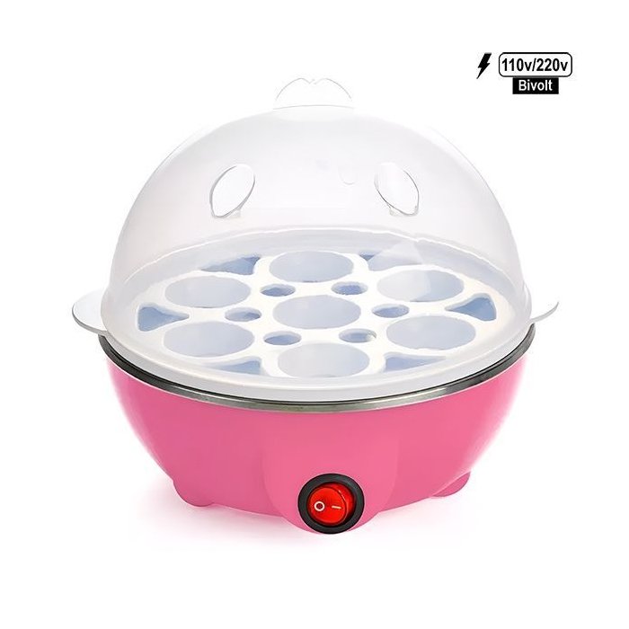 Cozedor Elétrico de Ovos Rosa 110v/220v Bivolt Compacto para Cozimento a Vapor de Ovos e Alimentos C