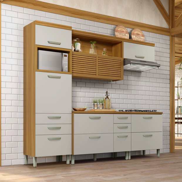 A Cozinha 4 Peças Ripado Princesa é a escolha ideal para quem busca sofisticação e praticidade no ambiente. Composta por painel, torre quente, armários aéreos e módulo organizador, oferece um excelente aproveitamento de espaço para armazenar mantimentos, utensílios e eletrodomésticos. O acabamento ripado traz um toque moderno e elegante, tornando essa cozinha perfeita para quem valoriza um design diferenciado. Fabricado em 100% MDF, proporciona resistência e durabilidade.