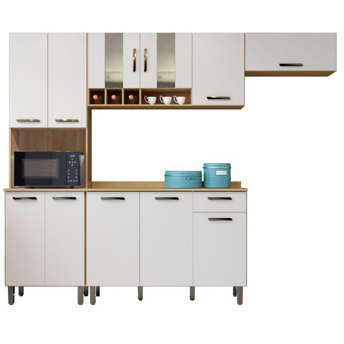 Itens inclusos: 1 Paneleiro c/ nicho Zafira 1 Aéreo 1200 c/vidro Zafira 1 Armário geladeira Zafira 1 Balcão 1200 Zafira 1 manual de montagem 1 certificado de garantia