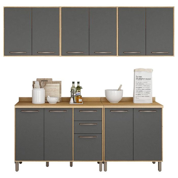 Balcão de Cozinha Áustria Cinamomo Grafite - Valdemóveis