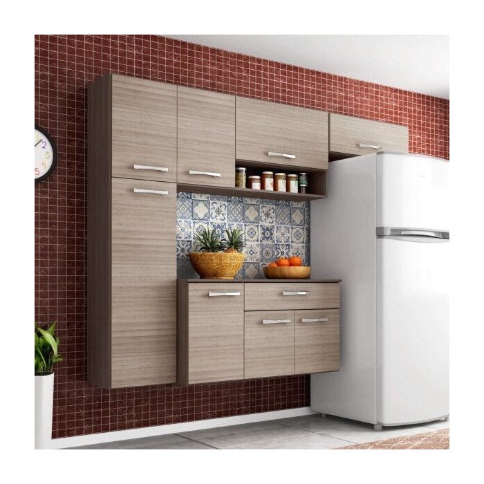 Cozinha 6 Peças 8 Portas 1 Gaveta Anita Poquema Móveis Capuccino/Amêndoa