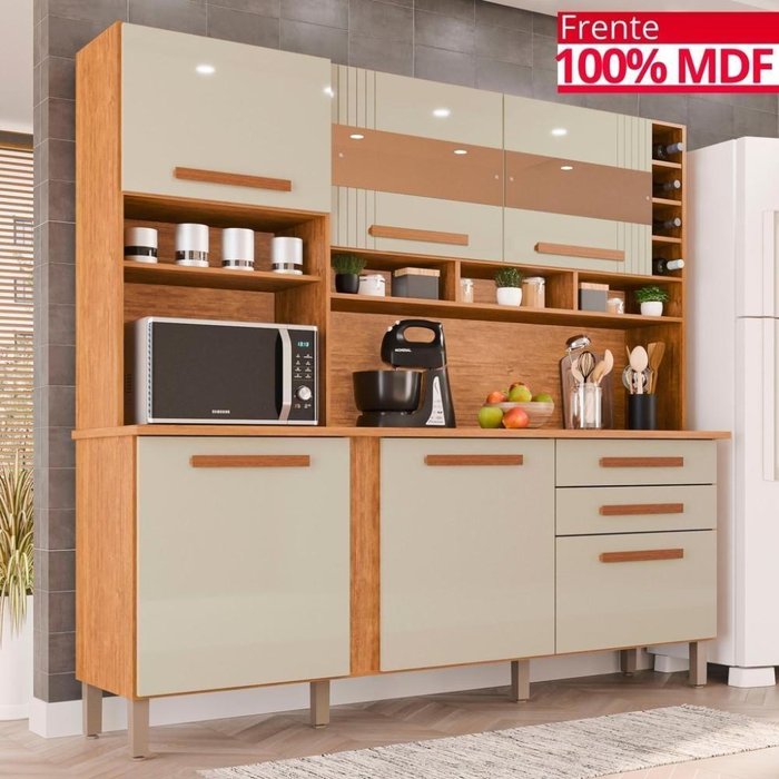 Cozinha 6 Portas 2 Gavetas Amanda Com Espelho - Tudo De Móveis Cinamomo/off