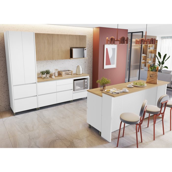 A Cozinha 8 Peças Ripado Rainha com Forno e Ilha é perfeita para quem busca funcionalidade e sofisticação. Com 8 portas e 12 gavetas, oferece amplo espaço para armazenamento, enquanto o forno e a ilha aumentam a praticidade. O design ripado traz elegância ao ambiente, tornando sua cozinha moderna e organizada. Ideal para quem tem grandes demandas de armazenamento e deseja transformar o ambiente com estilo e eficiência.