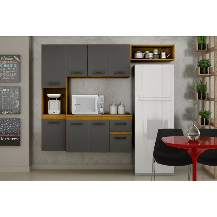 Cozinha 8 Portas 1 Gaveta Bianca Cinamomo/Grafite