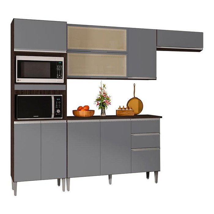 Cozinha Aline 3 Peças Chocolate Cinza Platinum– Poquema