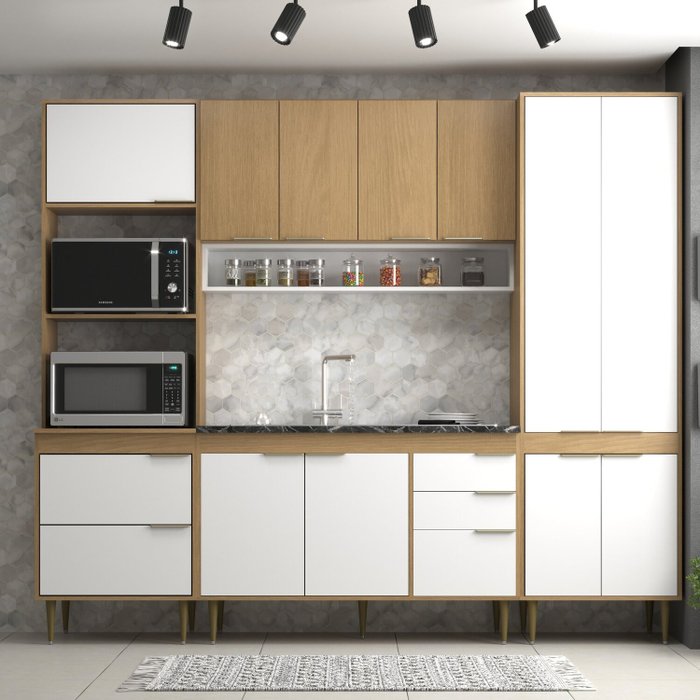 Cozinha Armário Modulado 4 Peças 240 Cm Comprimento Ágata Nogal/Branco