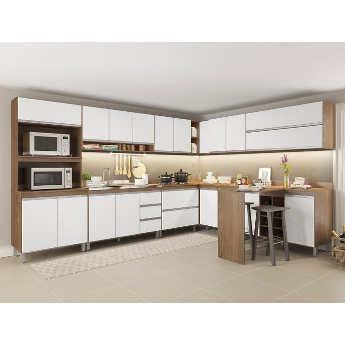 Cozinha Canto Modulada Sabrina 12 Peças 18 Portas 05 Gv 332/254x195x52 Avelã/Branco TX A04S - MENU