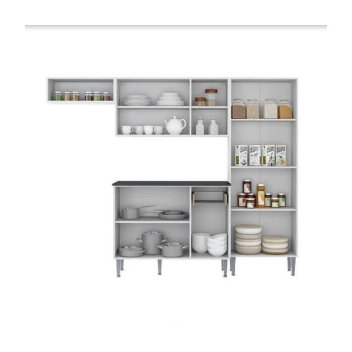Um (1) paneleiro com 4 portas- Um (1) balcão com 2 portas e 2 gaveta- Um (1) armário aéreo com 2 portas e 2 nichos