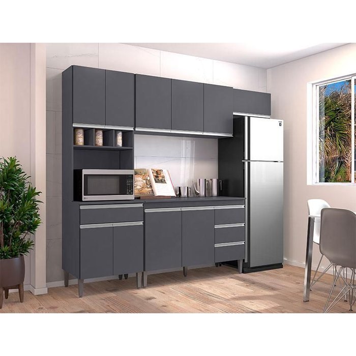 Sua cozinha ideal está aqui, pensando em você que não tem muito espaço e procura por cozinha compacta apresentamos essa linda opção, a Cozinha da linha Andréia desenvolvida com todo carinho pela AJL com excelentes materiais de qualidades para maior durabilidade do móvel, composta por Armário Aéreo Geladeira, Armário Aéreo 3 Portas, Paneleiro Duplo e Balcão com Tampo 120cm com lindo design na cor Cinza Fosco proporcionando modernidade e um toque especial em sua cozinha, possui amplo espaço interno para melhor organizar seus utensílios, praticidade, conforto e segurança acompanham seu dia a dia. Não deixe de aproveitar, garanta a sua!