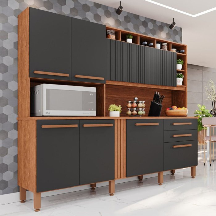 Cozinha Compacta 100% MDF 8 Portas 2 Gavetas Millena Yescasa Cinamomo/Grafite