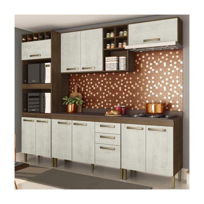 Cozinha Compacta 11 Portas 2 Gavetas Viena A1399 Casamia Dark/Snow