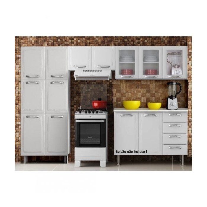 Cozinha Compacta 3 Peças, 3 Portas de Vidro sem Balcão Premium Itatiaia Branco