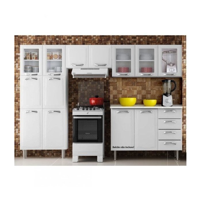 Cozinha Compacta 3 Peças 5 Portas de Vidro sem Balcão Premium Itatiaia Branco