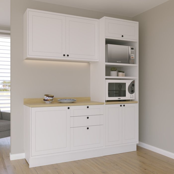 Itens Inclusos1 Balcão 120cm , 1 Aéreo 120cm, 1 Torre Quente 70cm, 1 Tampo 120cm e 1 Manual de Montagem.