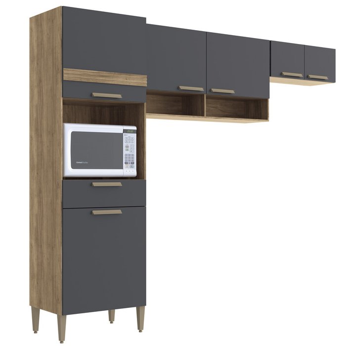 e praticidade, pois possuem prateleiras. No nicho torre, há espaço para o microondas, gaveta para