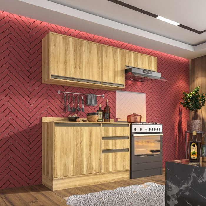 Cozinha Compacta 3 Peças 7 Portas 2 Gavetas Amanda Sallêto Móveis Carvalho