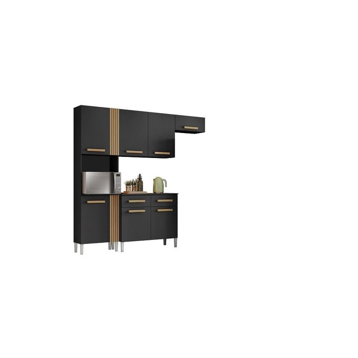 Cozinha Compacta 3 Peças sem Balcão 7 Portas 2 Gavetas Juma Preto e Atacama