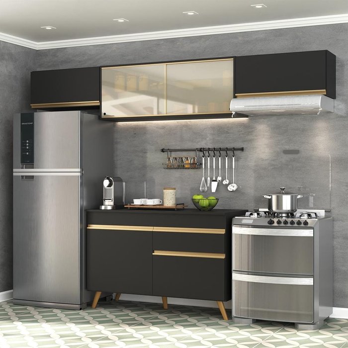 A Cozinha Compacta 4 peças com Armário e Balcão MP3698 Veneza Multimóveis tem um excelente custo benefício e um amplo espaço interno. Produzida em MDP com acabamento acetinado (cerca de 20% de brilho), que garante maior durabilidade e resistência, possui corrediças metálicas (mais leveza no manuseio), pés retrô em polipropileno, que deixam o ambiente mais estiloso, puxadores em ABS e tampo em MDP 15mm com pintura de alta resistência. Os módulos são individuais e você pode montar da maneira que se adaptar melhor ao seu ambiente. O balcão possui tampo removível (compatível com pia de 120 cm). Para deixar sua cozinha mais bonita e organizada, possui vidro reflecta e compartimento especial para utensílios mais altos. Conteúdo da Embalagem: 1 (um) armário aéreo com portas de vidro 120cm 2 (dois) armários aéreos 70cm 1 (um) balcão com tampo 120cm Dimensões do produto montado: Cozinha - Altura: 203cm | Largura: 260cm | Profundidade: 32cm (aéreos) - 53cm (balcão com tampo) Espaço para fogão/geladeira - Altura: 170cm | Largura: 70cm *Você pode consultar as medidas internas na imagem técnica do produto. Disponível nas cores: Branco - Preto Acetinado Texturizado *As cores do produto podem sofrer variações de tonalidade de acordo com as configurações do seu dispositivo. Imagem meramente ilustrativa. Decoração e eletros não acompanham o produto. Produto NOVO - acompanha nota fiscal, manual de montagem e certificado de garantia. O produto será entregue desmontado e a Multimóveis não disponibiliza o serviço de montagem.
