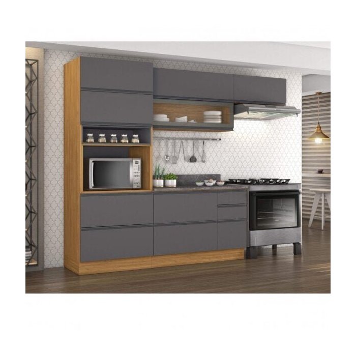 Cozinha Compacta 4 Peças 7 Portas 5 Gavetas Inova Itatiaia Freijó/Grafite