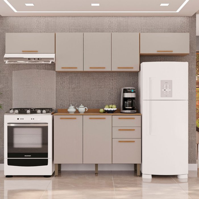 1 Armário Aéreo triplo, 1 Balcão, 2 aéreo geladeira, Manual de Montagem e Kit Ferragens.