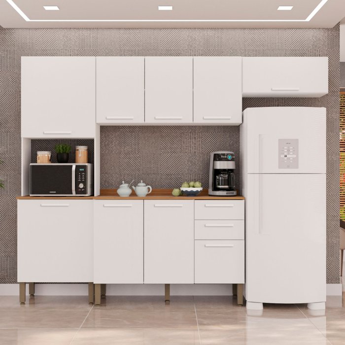 | Itens Inclusos | 1 Torre Quente, 1 Armário Aéreo triplo, 1 Balcão, 1 aéreo geladeira, Manual de Montagem e Kit Ferragens. |