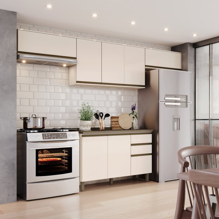Cozinha Compacta 4 Peças com Duplo Aéreo Basculante 100% Mdf Off White