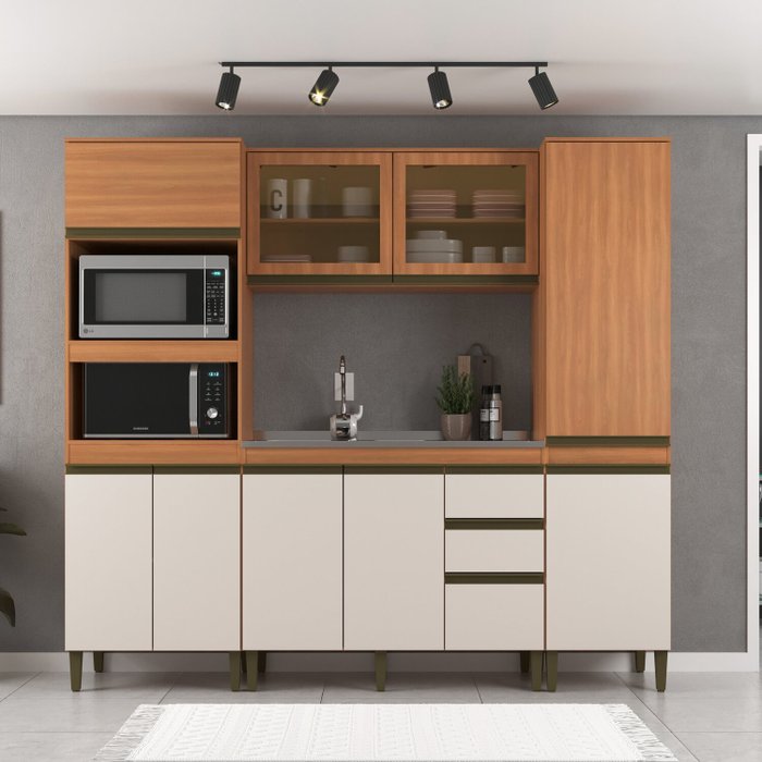 Balcão de pia : A 87 x C 120x P 52 - Aéreo: A 69,5 x C 120 x P 32 cm - Torre: A 203 x C 70 x P 52 cm - Paneleiro A 203 x C 50 x P 52 cm