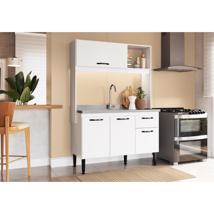 Cozinha Compacta 4 Portas 1 Gaveta 1 Nicho Katy Móveis Branco