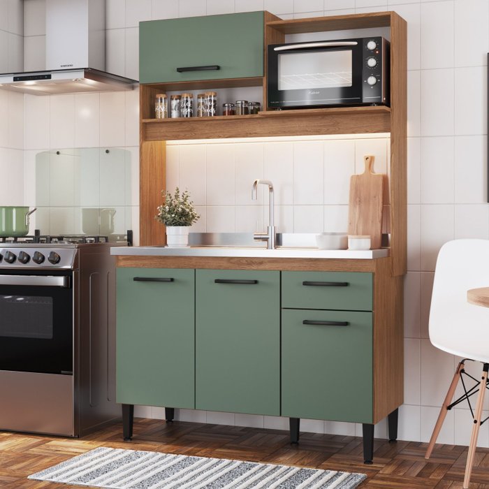 Cozinha Compacta 4 Portas 1 Gaveta Naty Freijó/Branco