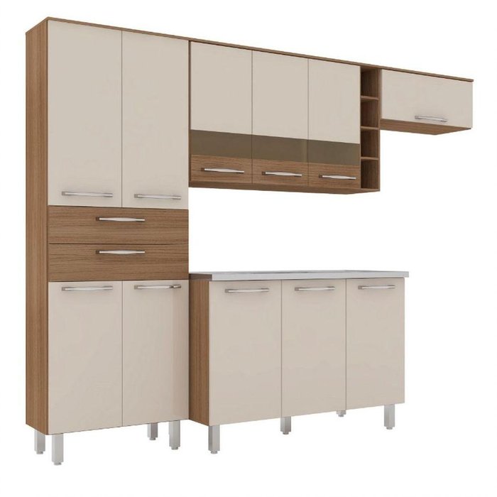 Cozinha Compacta 5 Peças 11 Portas 2 Gavetas Com Balcão Mel Poliman Móveis Carvalho Com Off White