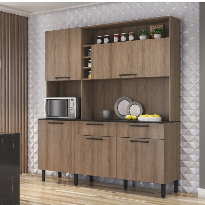 Cozinha Compacta 5 Portas 2 Gavetas e Nicho Dara Itatiaia Castanho