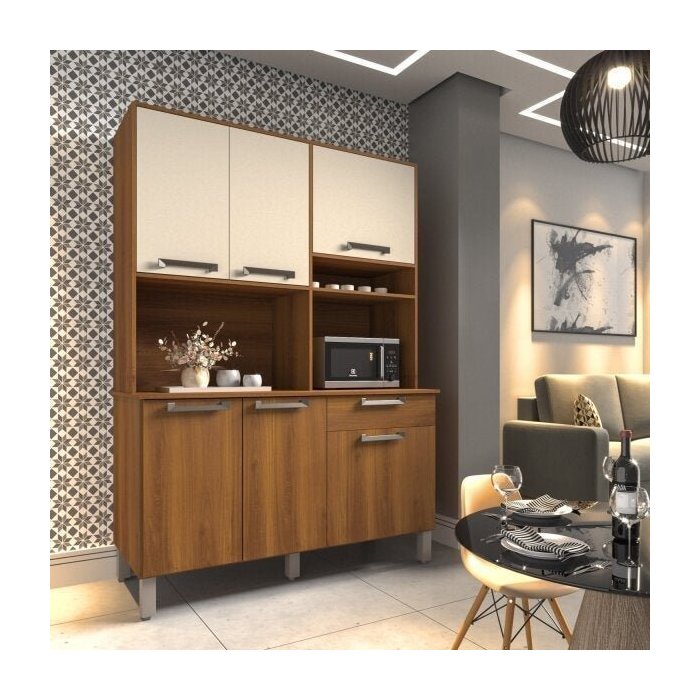 Cozinha Compacta 6 Portas 1 Gavetas Senna Sallêto Móveis Nogal/Off